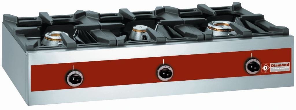 Réchaud à gaz de Comptoir | 3 feux vifs | TOP | 7,2 + 5,5 + 3,2 kW | 1005x510xh195mm
