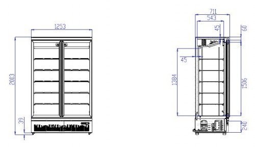 Réfrigérateur | 2 Portes en Verre | 1000 Litres | 1253x710x(h)1997mm
