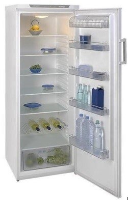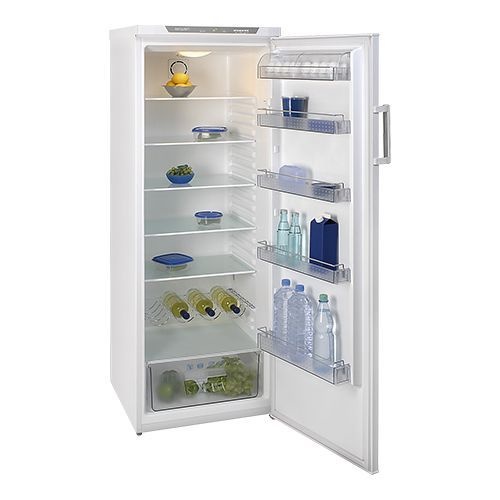 blanc, grand réfrigérateur, un affichage à LED, 6 plaques de verre, un bac à légumes, tôle étuvée blanc, intérieur en matière plastique, la porte se laisse mettre en oeuvre tournante gauche et droite, avec thermostat, dégeler automatique et illumination.
