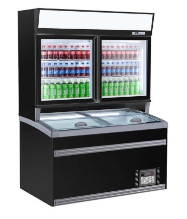 Réfrigérateur Libre Service Haut | Congélateur bas |Noir | 2 Portes Vitrées | 1454x890x(H)2000mm