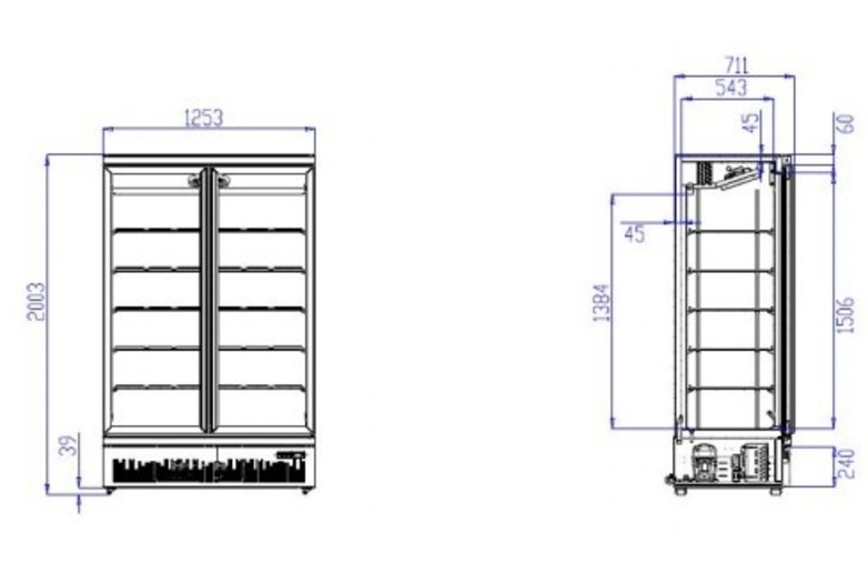 Réfrigérateur Noir | 2 Portes en Verre | 1000 Litres | Sur Roues | 1253x710x (H)1997mm