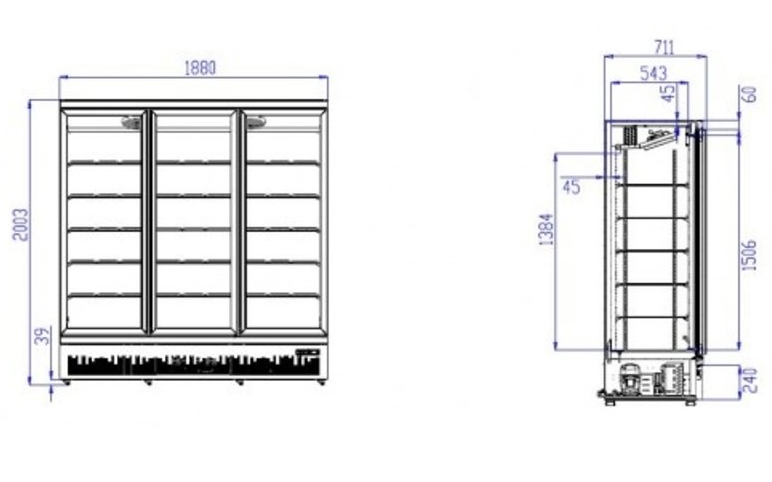 Réfrigérateur Noir | 3 Portes en Verre | 1530 Litres | Sur Roues | 1880x710x (H)1997mm
