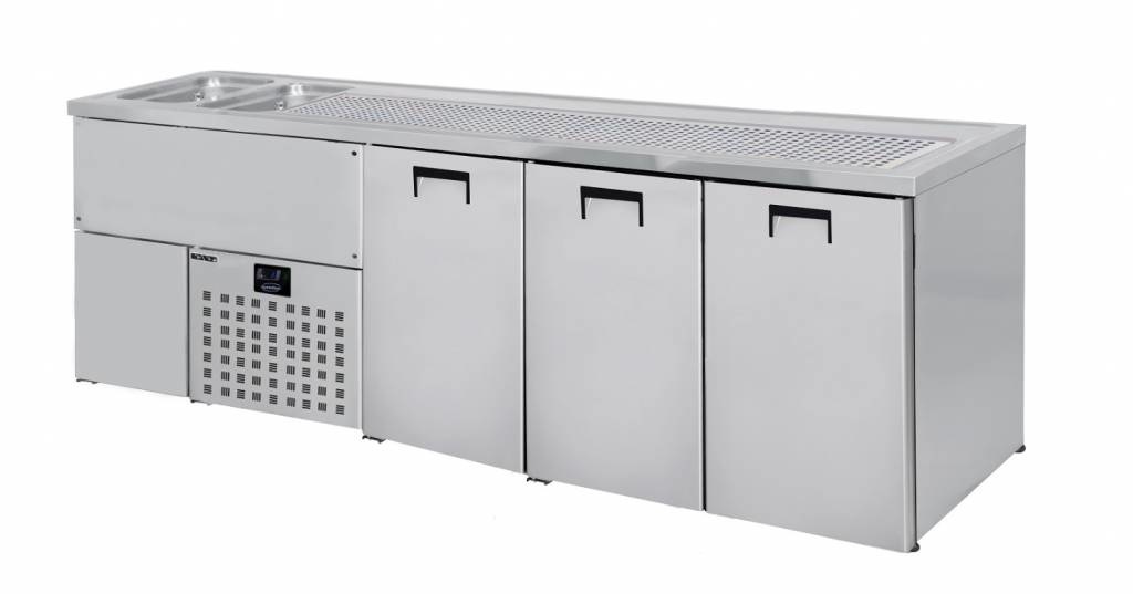 Refroidisseur de Bière | 3 Portes | Double Evier à Gauche (300x500mm) | 1950x700x(H)960mm