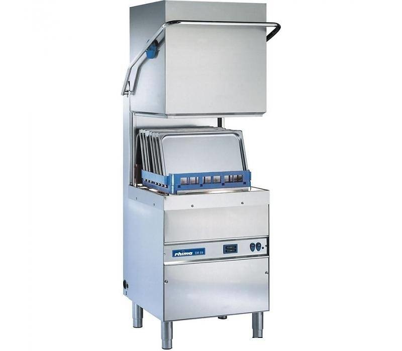 Le RHIMA DR 59 peut nettoyer à la fois la vaisselle, la verrerie, la coutellerie et les ustensiles de cuisine. Cette machine a un programme de lavage de 90 secondes et démarre automatiquement lorsque le capot est fermé. Le lave-vaisselle est équipé de bras de lavage et de rinçage séparés par le bas et par le haut. La dynamique inégalée des bras de lavage et de tétine empêchent la chute de l'eau pendant le processus de rinçage. Les coins arrondis de l'évier profond rendent la machine facile à nettoyer à la fin de la journée. Le modèle du modèle DR 59 est parfaitement adapté pour des restaurants, des bistros et des cuisines de Hôpitaux.