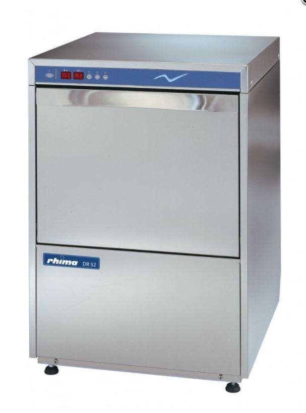 Le RHIMA DR 52E est une machine moderne et professionnelle au design épuré et pratique, spécialement conçu pour laver la vaisselle, les assiettes, les caisses et les matériaux de cuisine. En raison de la faible hauteur de seulement 85 cm, la machine peut être placée sous un plan de travail ou un magasin, mais la position libre est également possible.