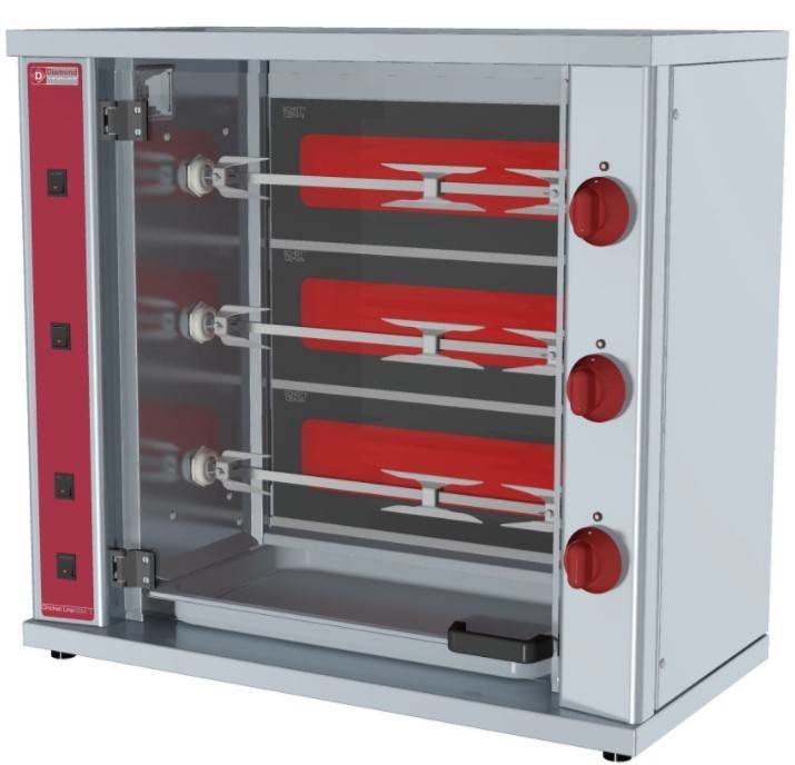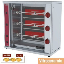Rôtissoire à poulets | vitrocéramique | 3 broches | 800x400x(h)735mm | 4,5kW | SMALL | 9 poulets