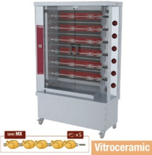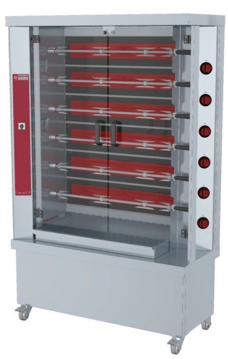 Rôtissoire à poulets | vitrocéramique | 6 broches | 1200x500x(h)1880mm | 15kW | 30 poulets