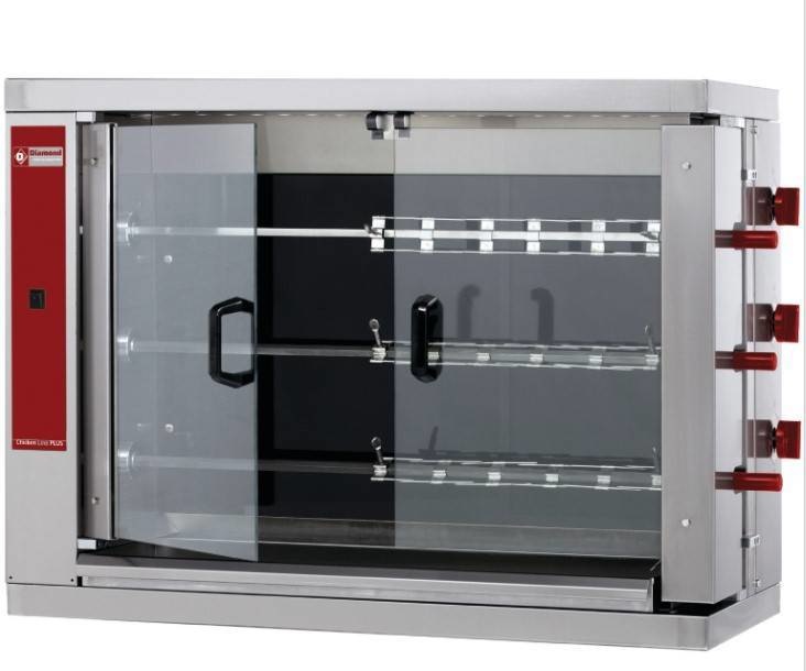 Rôtissoire électrique | vitrocéramique | 3 broches | 18 poulets | 14,4kW | 1098x480xh820mm