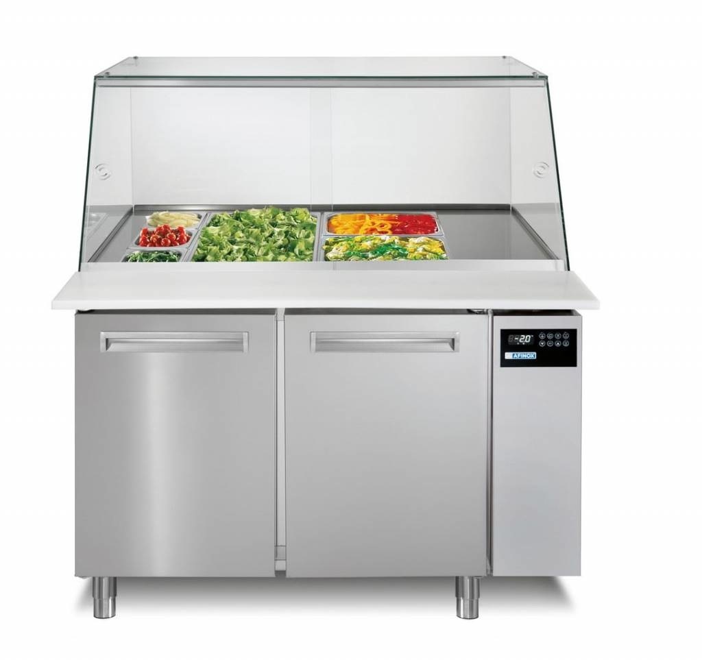 Saladette avec évaporateur en acier inoxydable avec construction en verre