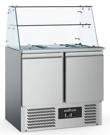 Saladette inox | 2 Portes | avec Vitrine en Verre | 900x700x850(h)mm