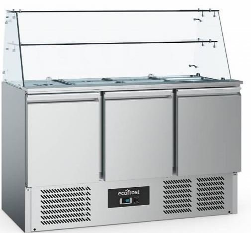 Saladette inox | 3 Portes | avec Vitrine en Verre | 1365x700x850(h)mm