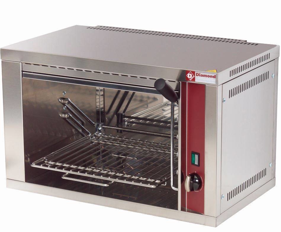 Grille en acier chromé, réglable sur 3 positions grâce à un dispositif à levier.Chauffage par résistance blindée en acier inox, traitée "Incoloy".
