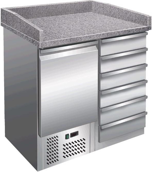 Comptoir à Pizza avec Plan Granite | 1 Porte + 6 Tiroirs | 950x700x1020(h)mm