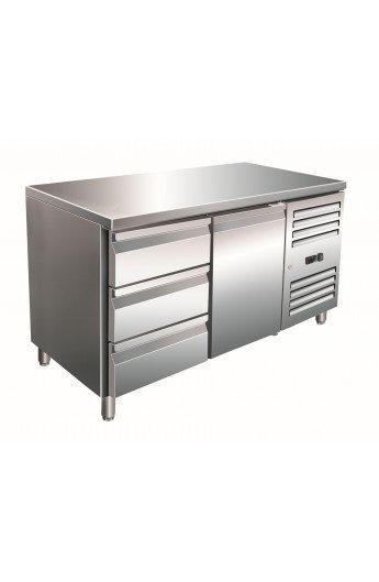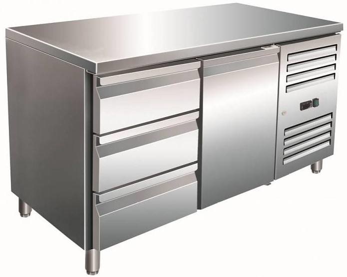 Comptoir Réfrigéré INOX | 1 Porte + 3 Tiroirs | 1360x700x890/950(h)mm