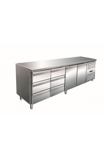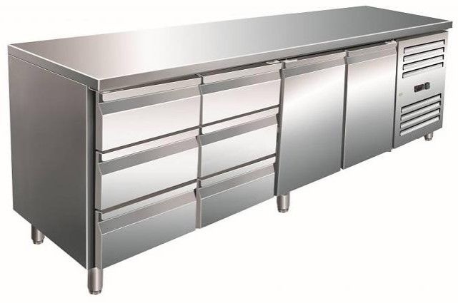 Comptoir Réfrigéré INOX | 2 Portes + 2x3 Tiroirs | 2230x700x890/950(h)mm