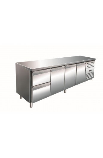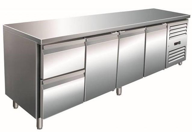 Comptoir Réfrigéré INOX | 3 Portes + 2 Tiroirs | 2230x700x890/950(h)mm