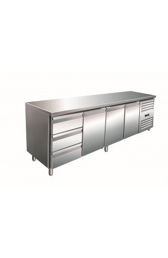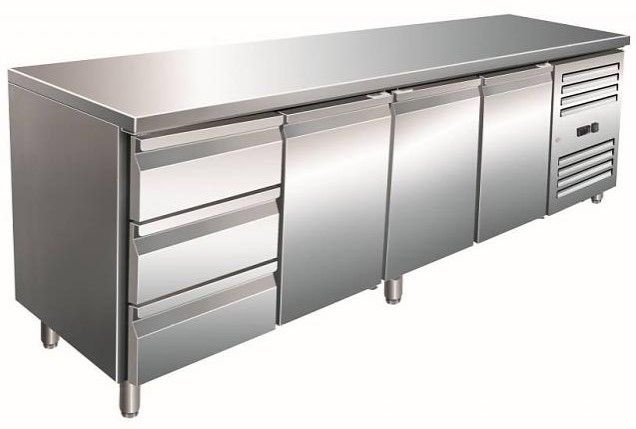 Comptoir Réfrigéré INOX | 3 Portes + 3 Tiroirs | 2230x700x890/950(h)mm