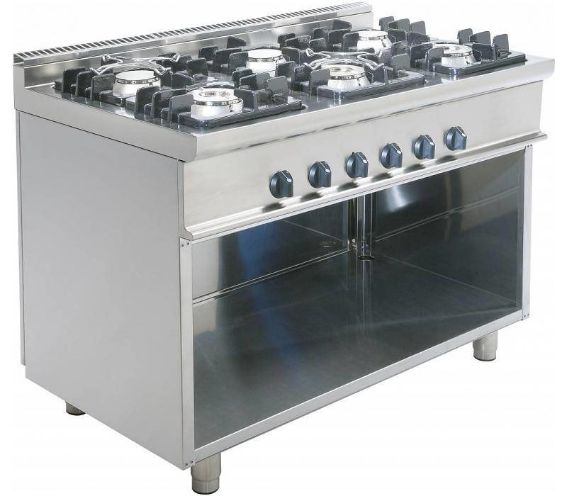 Cuisinière Gaz sur Meuble Ouverte | 6 Feux | 3x 4,5kW + 3x 7,5kW | 800x700x850(h)mm