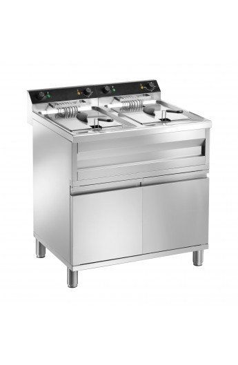 Friteuse sur Meuble | 2x 9 Litres | 2x 6kW/400V | avec Vidange | 600x540x850(h)mm