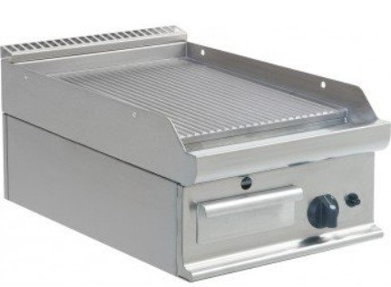 • Plaque de cuisson rainurée en acier poli, épaisseur 15mm