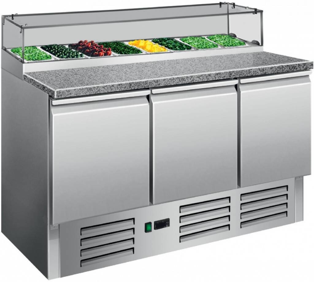 Saladette INOX | 3 Portes | Présentoir en Verre 8x 1/6GN