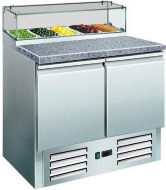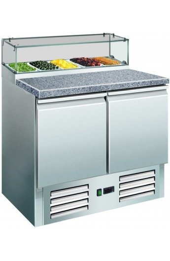 Saladette Plan Granite | 2 Portes avec Présentoir 5x 1/6GN | 900x700x1180(h)mm