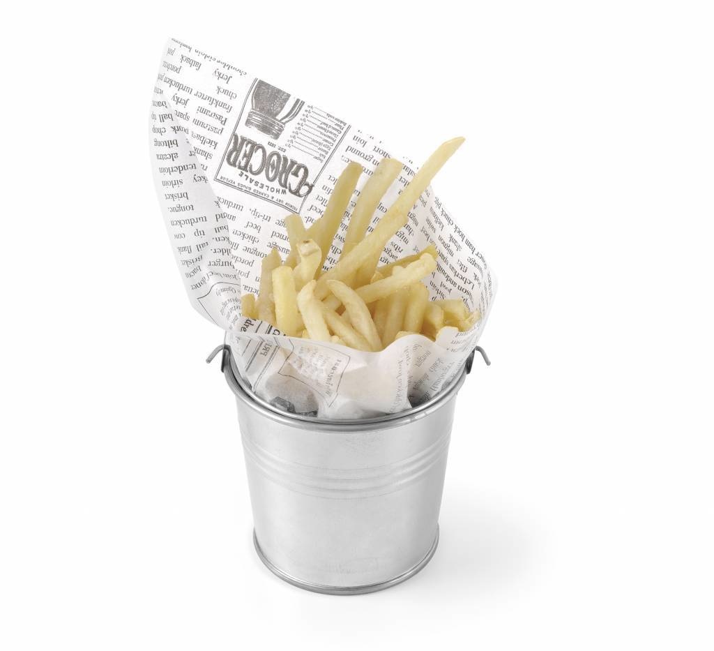 - L'acier galvanisé ne convient pas au contact alimentaire, recouvrez les seaux avec notre papier sulfurisé quand vous les utilisez pour servir des aliments.