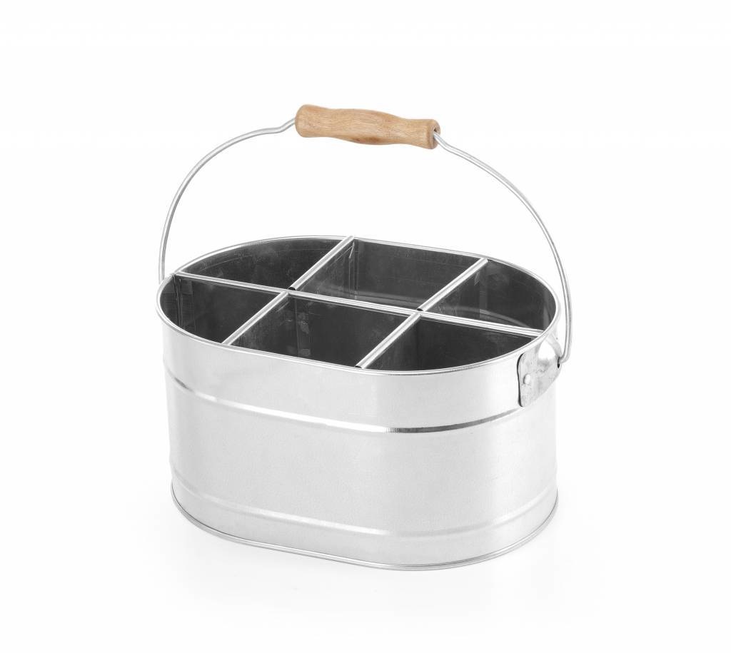 Seau pour Couverts et Serviettes | Poignée en Bois | 245x167x(H)132mm