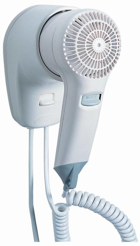 - Sèche-cheveux pistolet de nouvelle conception, 2 vitesses, 1200W max., commutateur ON-OFF bipolaire inclus dans la base, 2 ans de garantie, avec bouton d'activation de sécurité du printemps.