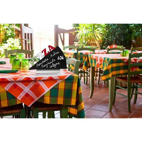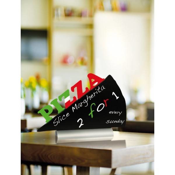 Cette ardoise de table Securit en forme de Pizza est idéale pour les snacks, pizzerias ou les bars. Vous pouvez y écrire vos promotions, vos offres ou spécialités.Ardoise utilisable recto verso, facile à nettoyer avec une éponge. L'ardoise est amovible et est livrée avec un feutre craie blanc.
