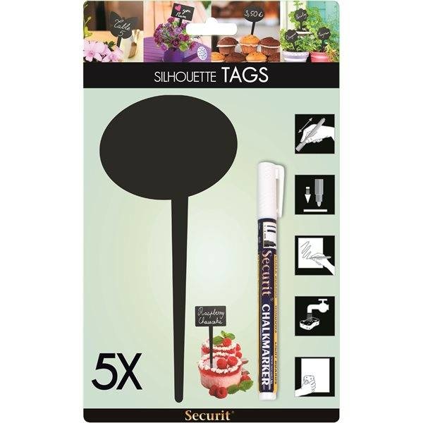 Lot de 5 Ardoises Bulle Pique. Les ardoises pique Securit en forme de Bulle vous permettent d'inscrire le nom de vos invités, des noms de plantes, des petits messages.- Dimensions: 80x180mm