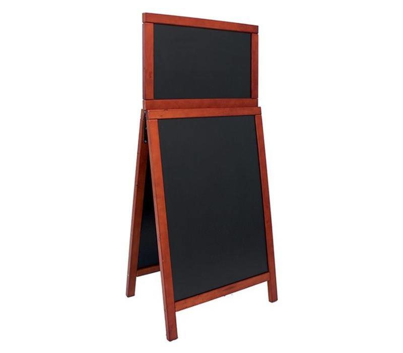 Ce panneau-trottoir en bois dur couleur acajou vous permet d'afficher vos menus, promotions, évènements, et d'attirer l'oeil des passants. Ce stop trottoir est composé de deux ardoises de qualité supérieure et convient à un usage intérieur ou extérieur grâce à une triple couche de vernis protecteur. Il résiste aux rayures, aux UV et aux déformations dûes à la chaleur. Facile à nettoyer, il est conçu pour une utilisation avec les feutres craie Securit.