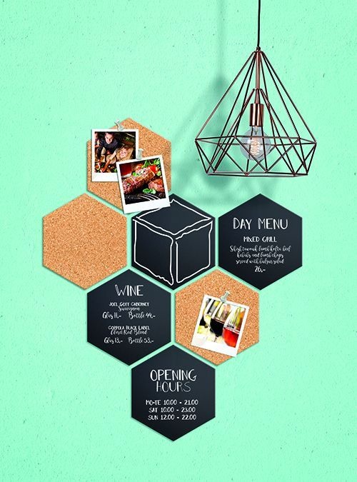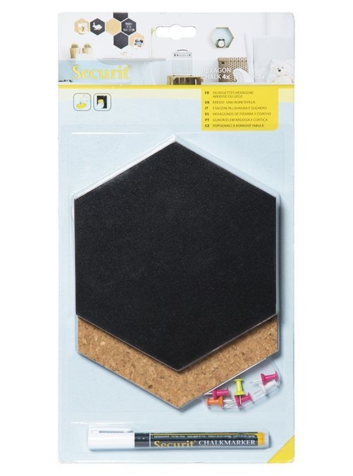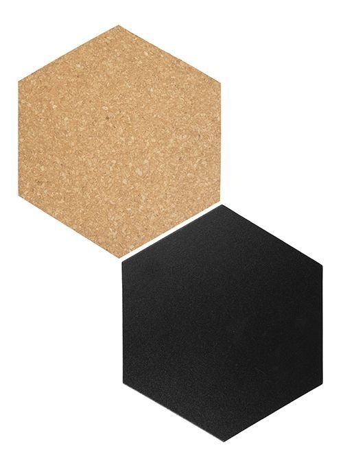 - hexagones de décoration, 4 pièces ardoise et 3 pièces tableaux en liège.