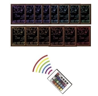 Ces panneaux muraux disposent de 5 programmes lumineux, 10 programmes de réglage et d’intensité, 16 couleurs et sont livrés avec une télécommande. Ce présentoir à affichage fluo LED est idéal pour créer une ambiance conviviale et chaleureuse dans votre établissement.Ce panneau en wengé, disponible en 3 tailles, s’utilise avec des feutres-craies et il est prévu uniquement pour un usage intérieur. Il peut être branché sur secteur et utilisé batterie Securit (non-incluse). Télécommande et un feutre-craie inclus.