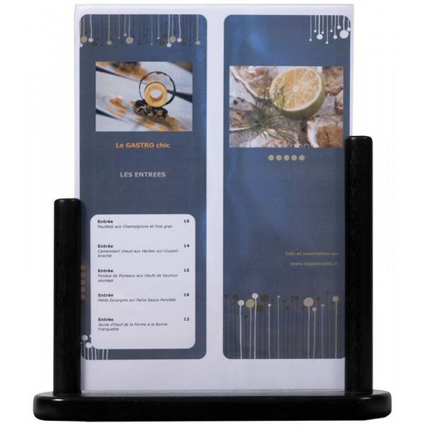 Ce porte affiche de couleur teck est idéal pour disposer sur vos tables et communiquer à vos clients vos menus, prix ou évènements. Vous pouvez y insérier un document ou une affiche. Ce prote affiche est disponible en 3 tailles: A4, A5, A6.