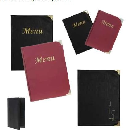 Ce protège menu Securit au design simple en PVC au fromat A4 de couleur noir est muni de 4 inserts donc 8 pages. Il est idéal pour les restaurants, les hôtels ou encore les bistrots. Le design de ce porte menu bordeaux est simple et neutre, il s'accordera donc facilement avec le style de votre établissement. Le protège menu A5 est équipé de coins métalliques et de pictogrammes de couleur dorée. Il comprend 4 inserts et sa matière PVC est très facile à nettoyer.