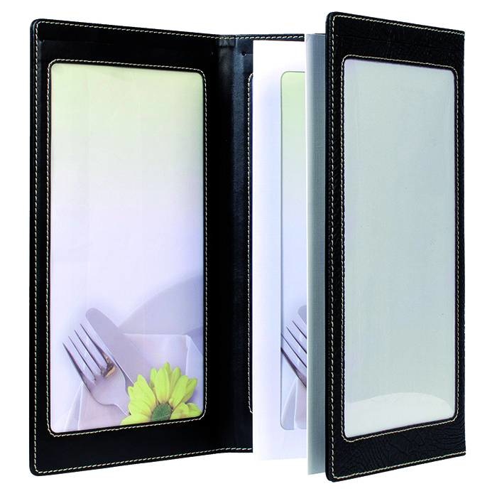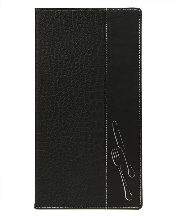 Protège-Menu Design Long CROC - A4 Noir - 3 Pages