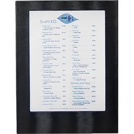 Une Protège-Menu LED en format A4 SIMPLE et effet cuir noir. Elle s'éclaire automatiquement à l'ouverture. C'est facile à nettoyer ce protège-menu. Temps de chargement de 3 heures et l'autonomie de la batterie est 8 heures.- dimensions: 35x27x1cm