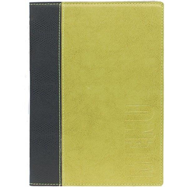 Ce protège menu vert de la ligne Trendy se décline en format A5. Il permet de présenter 4 pages et est idéal pour les restaurants, bars et hôtels. Ce porte-menu en simili cuir a un design moderne, élégant et original qui s'intégrera aisément au style de votre établissement. Il possède un double insert amovible. Ce protège menu est facile à nettoyer avec un chiffon humide. Il est fourni avec 1 inserts.- dimensions: 18x25 cm