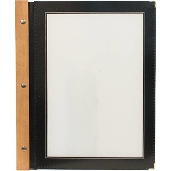 Ce protège menu Noir de la ligne bois se décline en format A4. Il permet de présenter 4 pages et est idéal pour les restaurants, bars et hôtels.Ce porte menu a un design original, élégant et luxueux qui s'intégrera aisément au style de votre établissement. Il possède un double insert amovible grâce à des petites vis de couleur dorée , ce qui permet d'insérer 4 pages au total. Chaque insert est équipé de 2 coins métalliques de couleur dorée.
