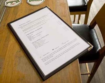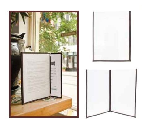 Ce protège-menu transparent Securit de la ligne cristal se décline en format A4. Il permet de présenter 6 pages avec son aspect double face. Ce protège-menu transparent est anti-reflet, double face, en simili cuir avec des bords cousus et des coins avec protection métallique.