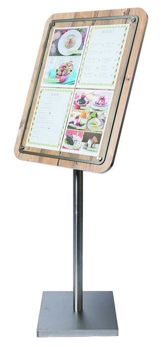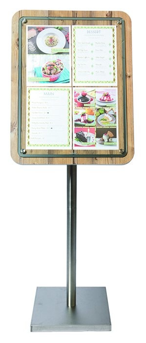 Vitrine d'Affichage Menus 4x A4 - Chêne - PIED VENDU SEPAREMENT