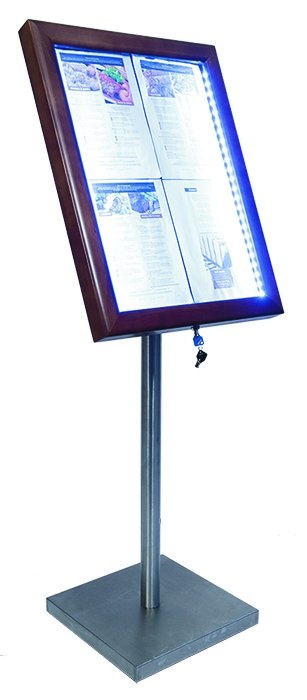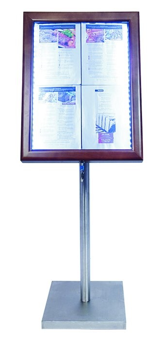 Vitrine d'Affichage Menus 4x A4 - LED - Couleur Marron | PIED VENDU SEPAREMENT