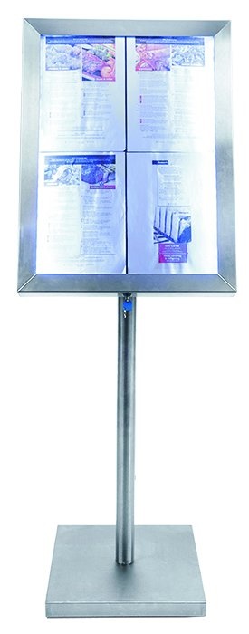 Vitrine d'Affichage Menus 4x A4 - LED - INOX - PIED VENDU SEPAREMENT