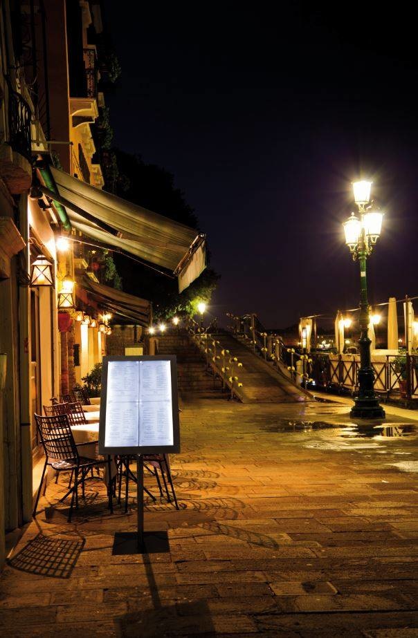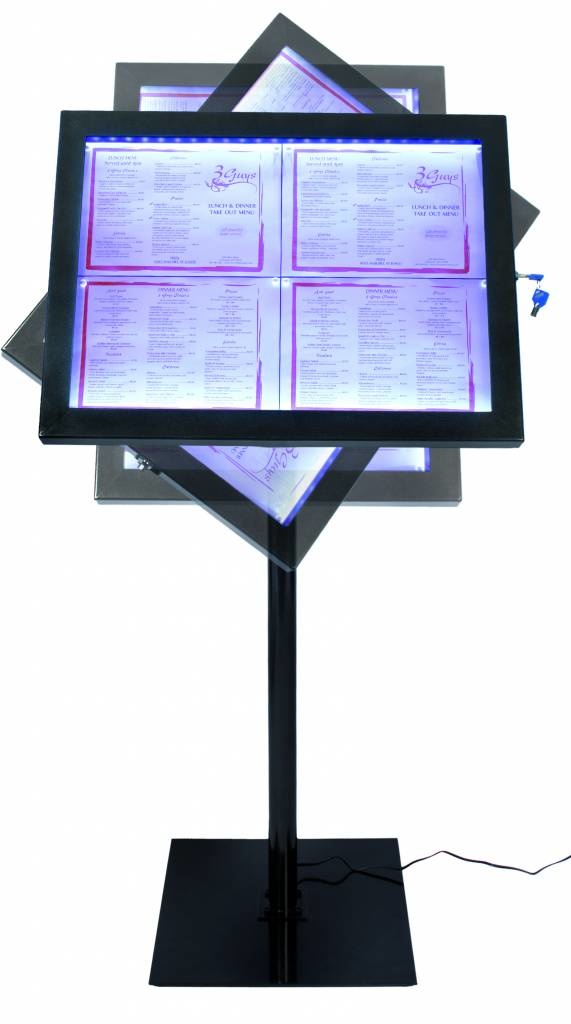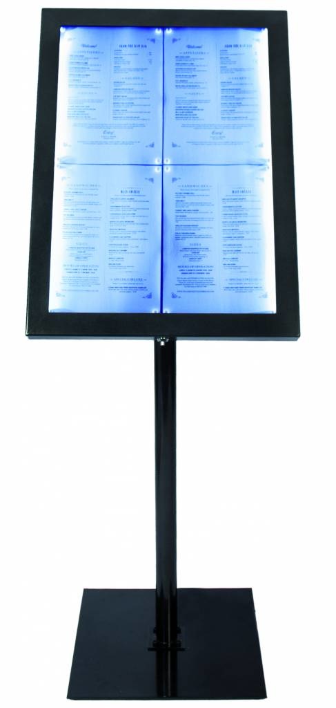 Vitrine dAffichage Menus LED | 4x A4 | Inox Noir | Set COMPLET avec Pied