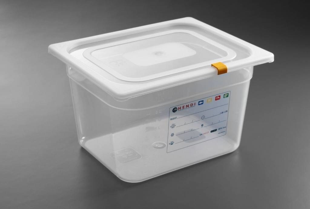 - Couvercles et clips de couvercle (vert, jaune, bleu, rouge selon les normes HACCP) compris.