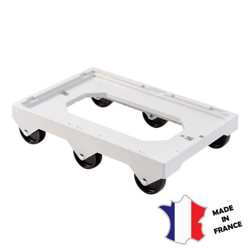 - Base injectée en ABS avec structure alvéolée garantissant une solidité et une longévité sans égale. Roues de 100 mm de diamètre en PA + bandage caoutchouc : silencieuse sur tout type de sol, pas de vibration, confort d'utilisation, ne gèle pas en chambre froide.