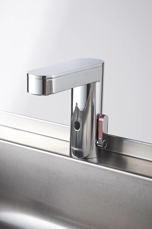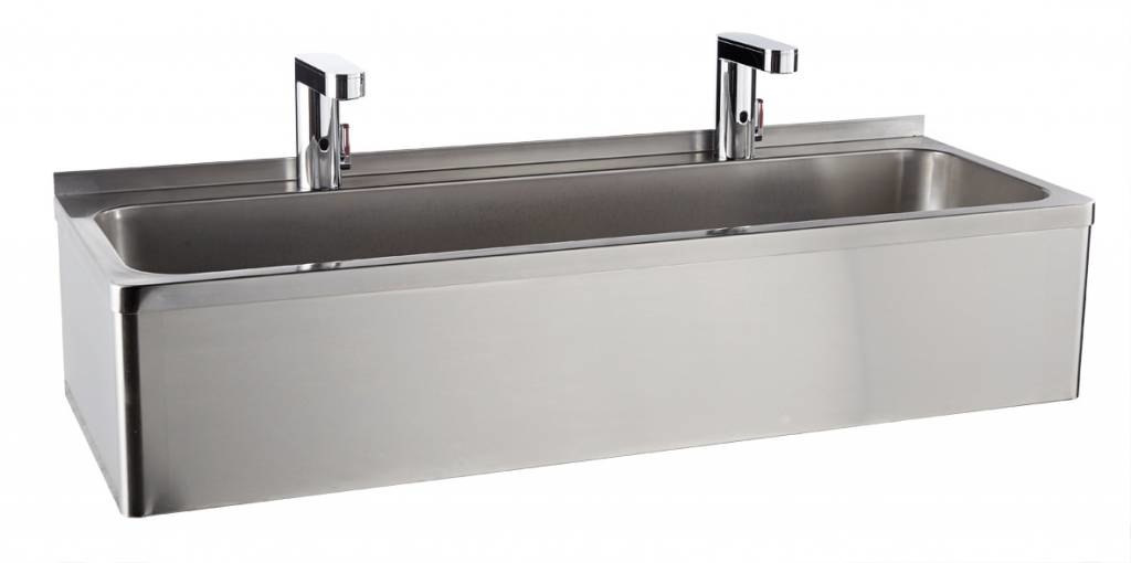 Lavabo Inox Double | 2 Robinets Électroniques | Régulateur de Température | 120x425x255 mm