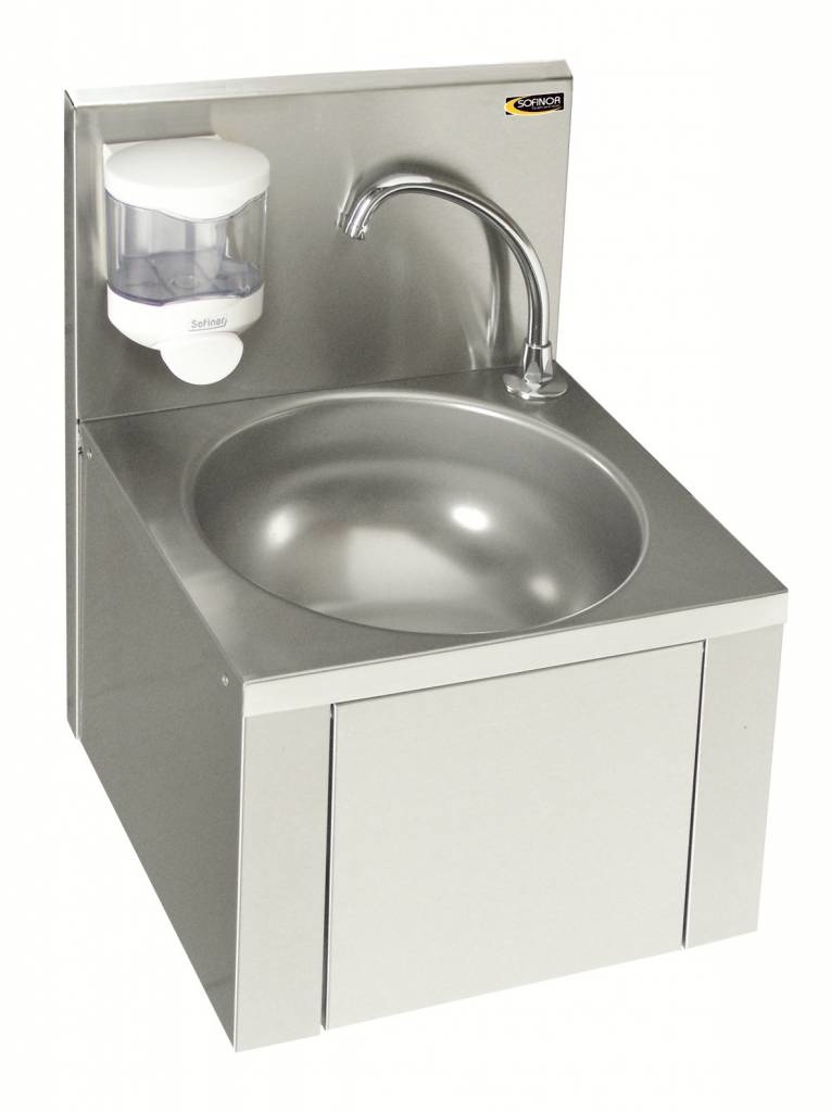 Lave-Mains Inox AISI 304 | Commande au Genou | Livré avec Distributeur de Savon | 384x353x(H)524mm