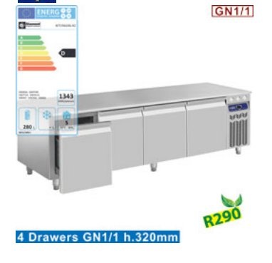 - Version 4 tiroirs GN 1/1 Hauteur de charge max. 320 mm.